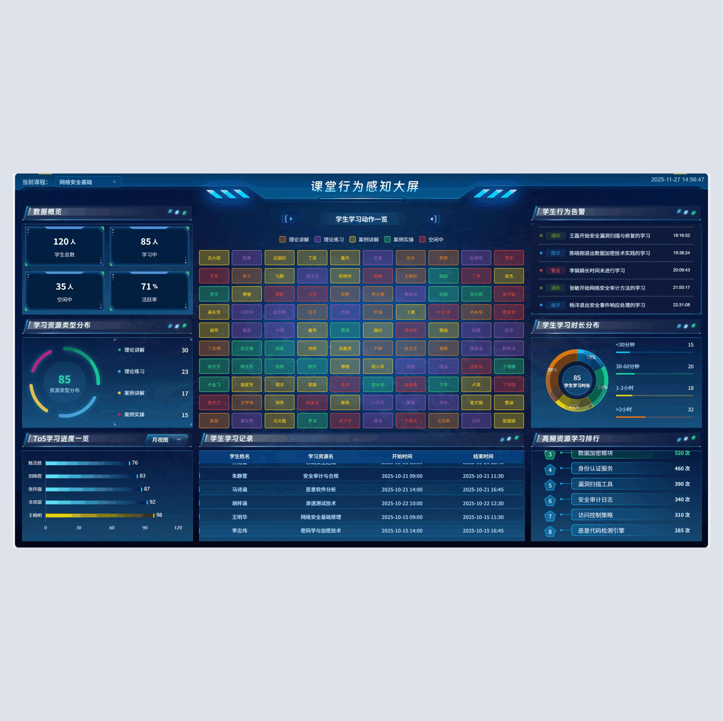 (3)教学驾驶舱,整合和可视化教学全流程数据