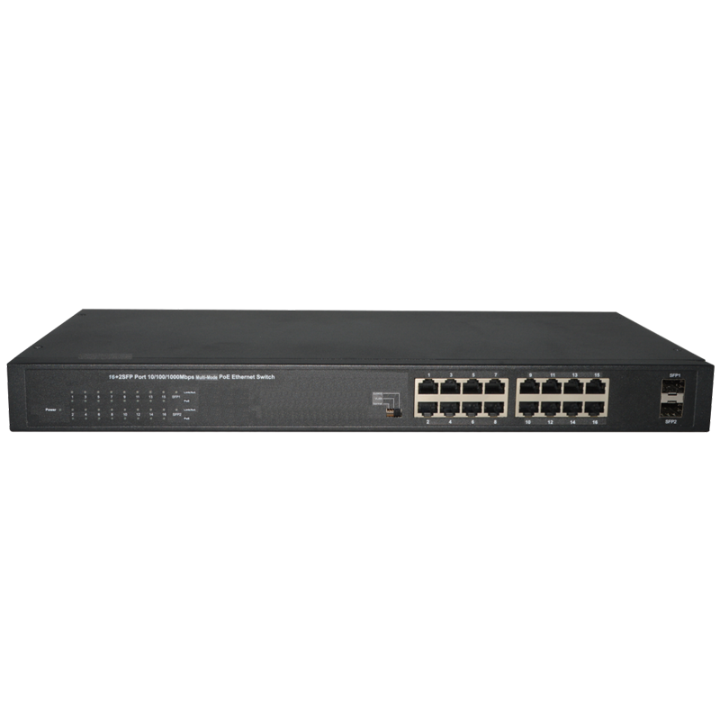 ES1218P-POE是一款全千兆非网管型以太网POE交换机产品,给予16个10/100/1000Mbps自适应RJ45端口(POE+)+2个10/100/1000Mbps自适应RJ45端口+2个100/1000Mbps SFP,支持所有端口线速转发。该产品支持手动切换工作模式,可切换为正常模式、端口隔离模式及网络延长模式。采用存储转发技术,结合动态内存分配,确保有效的分配到每一个端口,同时具备流...