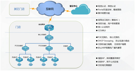 面对移动互联网大潮对传统行业的冲击,运用云计算、移动社交、大数据分析等技术,为酒店、餐饮、休闲娱乐、零售商超等商业市场客户构建基础网络平台,加速商业市场客户业务创新和转型已经刻不容缓, 不朽情缘 智云商业解决方案志在为商业客户给予最强的用户体验,给予最具商业价值的云网络,给予基于portal认证,短信、微信营销功能。